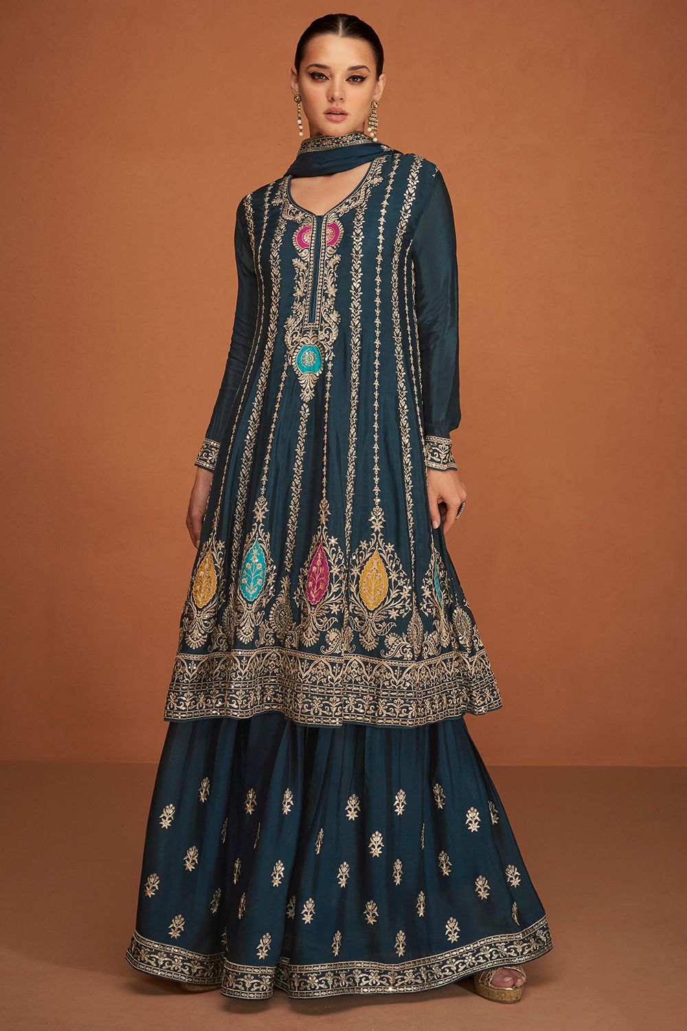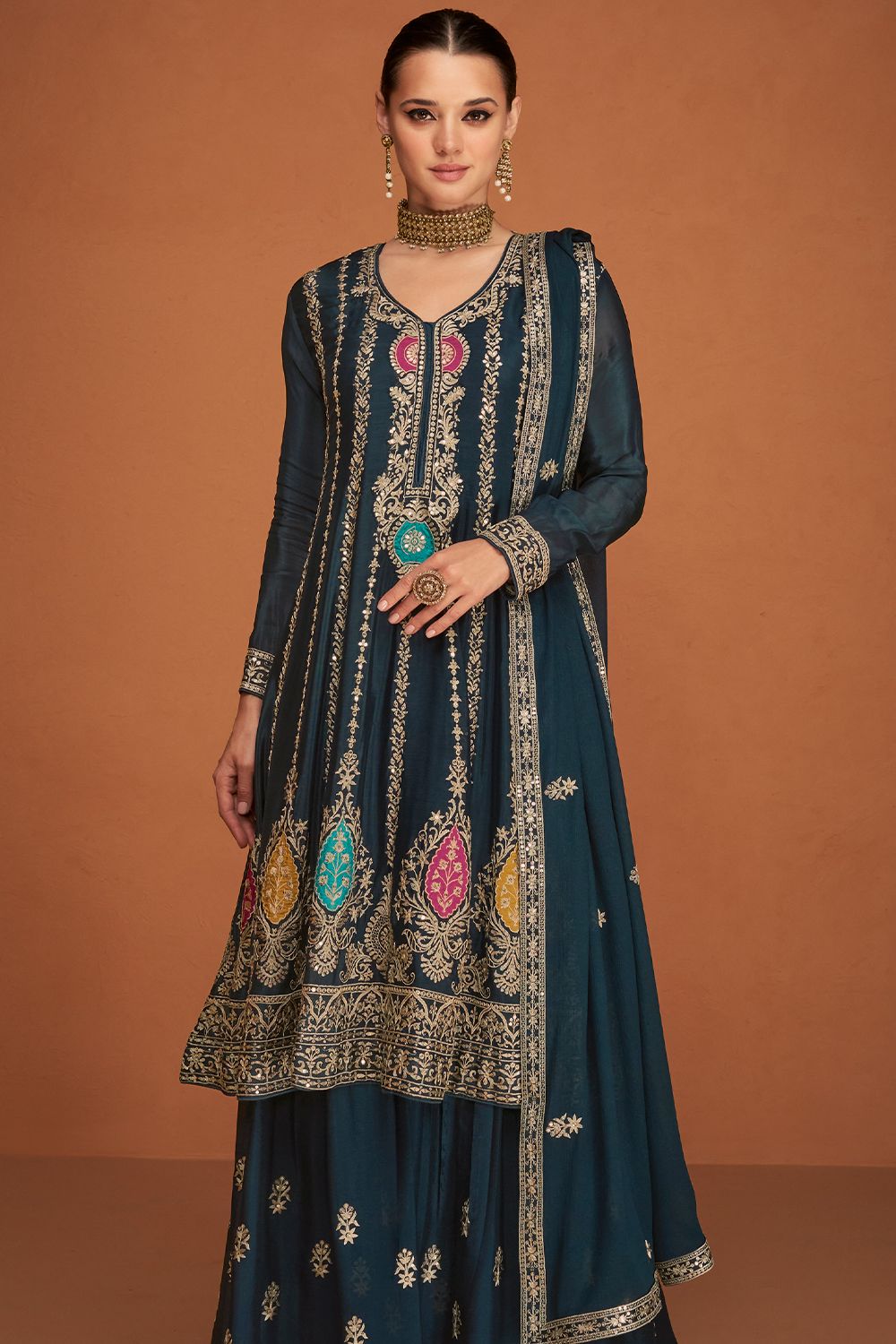 - Blue Chinnon Sharara Suit.