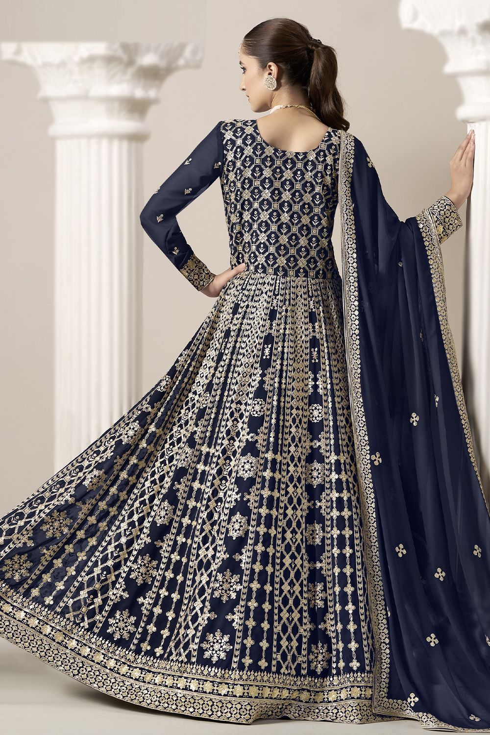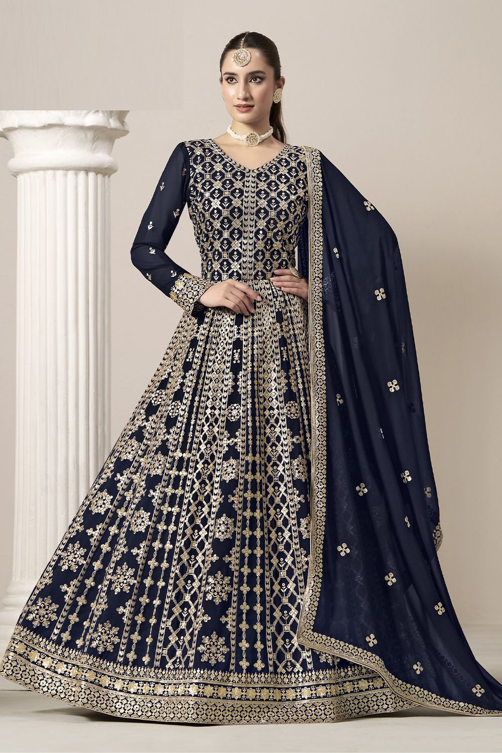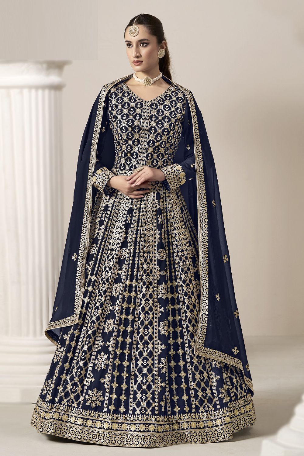 - Blue A Line Anarkali Suit set in Faux Georgette base with Zari Embroidery.