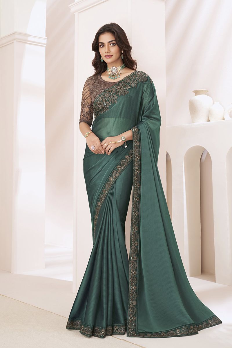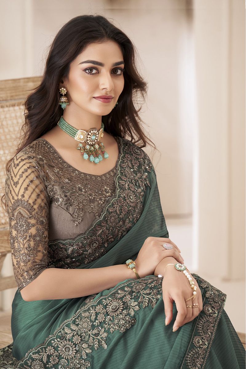 Emerald Green Silk Georgette Zari Embroidered Saree