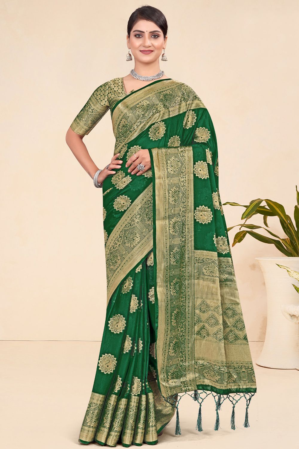 - Green Saree in Pure Viscose crafted from premium viscose fabric.
