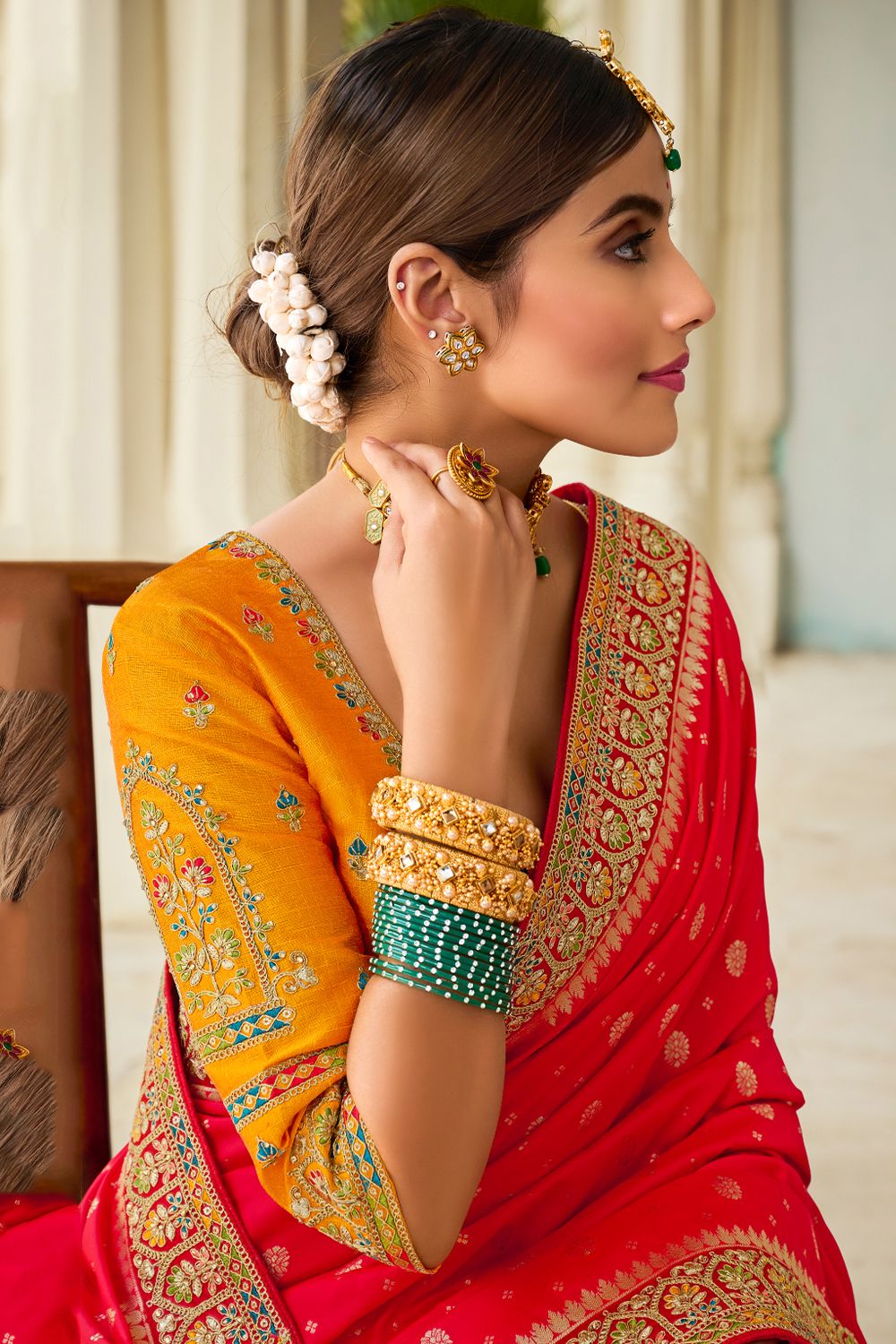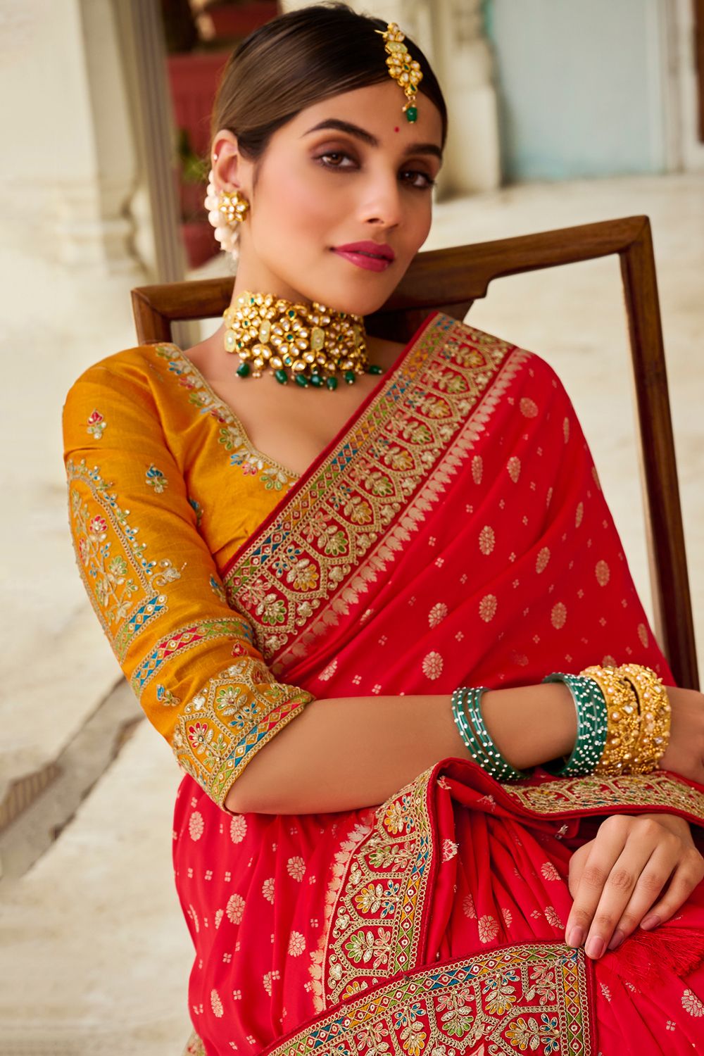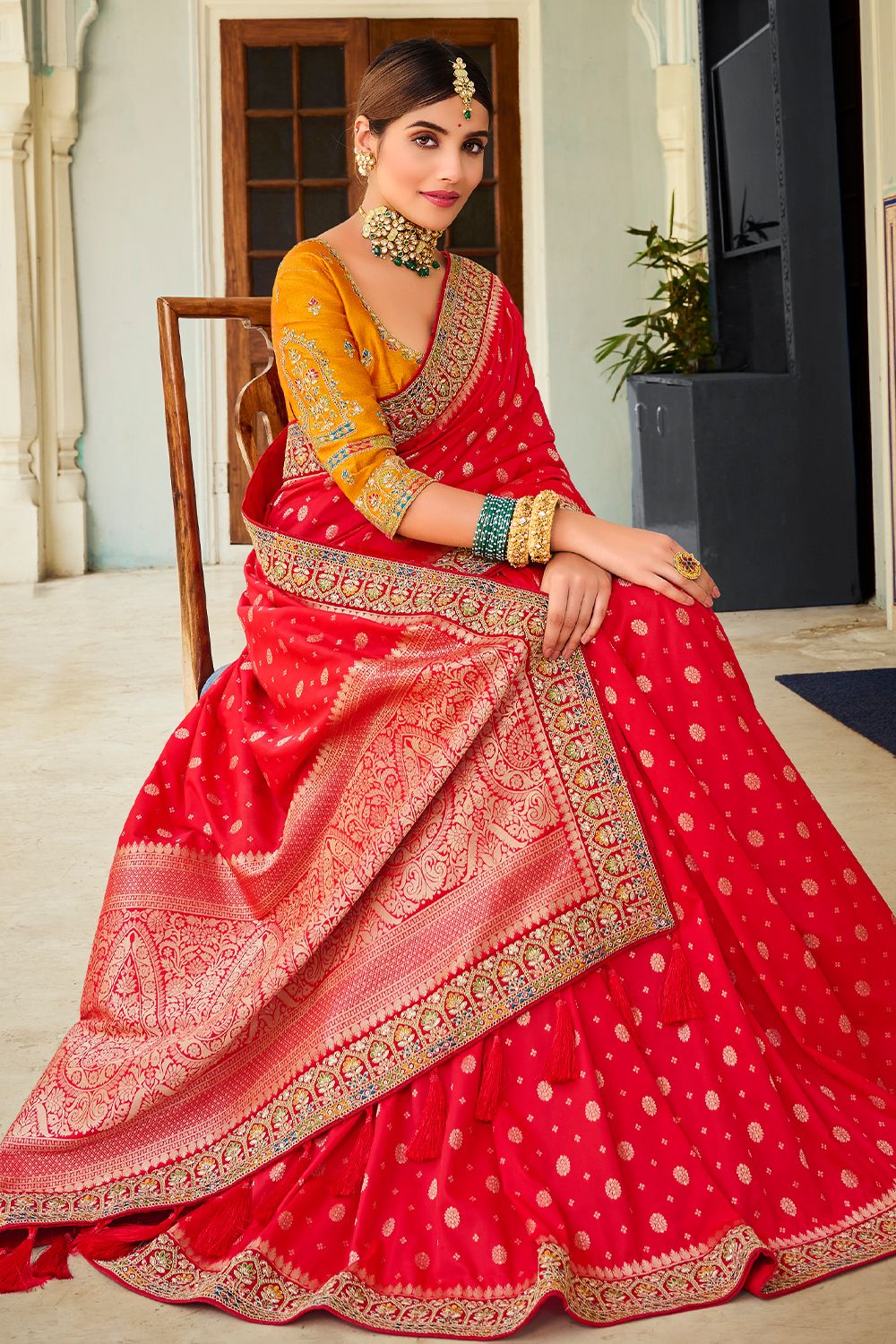 - Red Printed Saree with Tassels crafted from premium Silk fabric, which gives it a regal finish.
