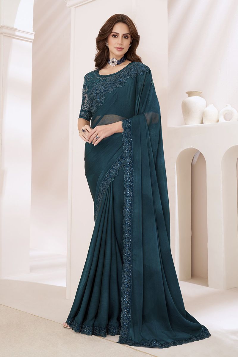 - Tael Blue and Silver Ombre Chiffon Saree with Zari Embroidered and Sequence work.