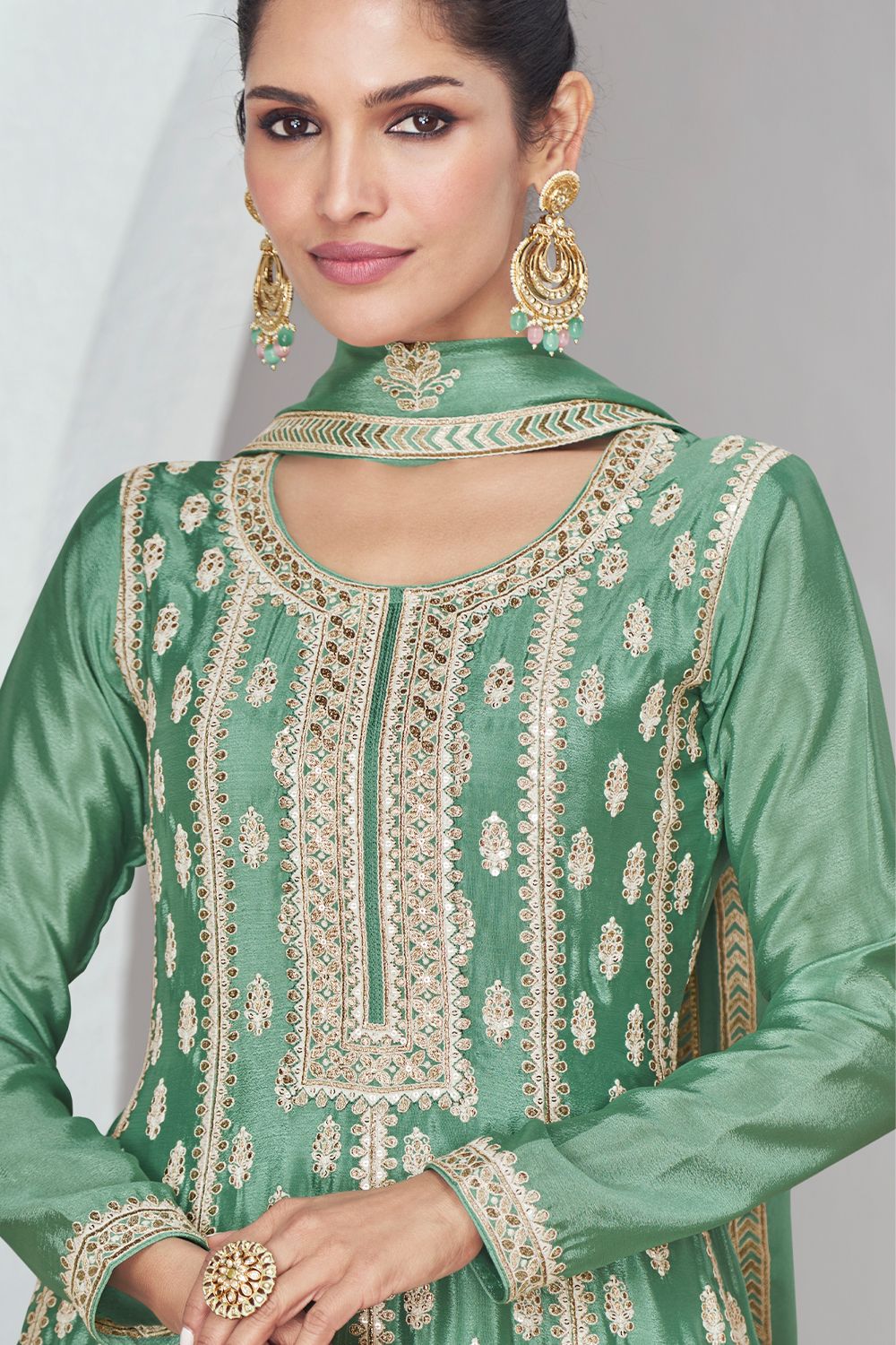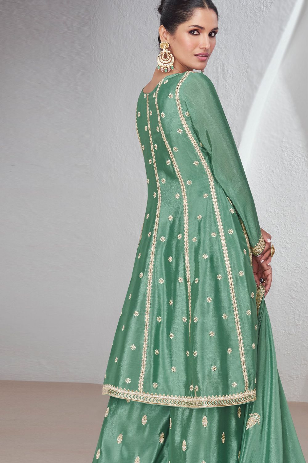 - Silk Sharara Suit in Teal Green with zari Embroidery work.