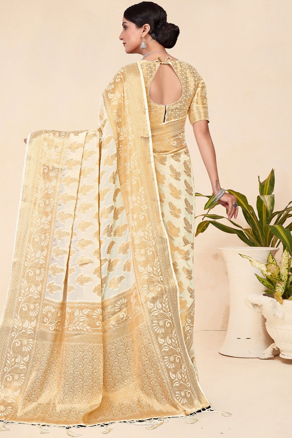 - White Saree in Pure Viscose crafted from premium viscose fabric.